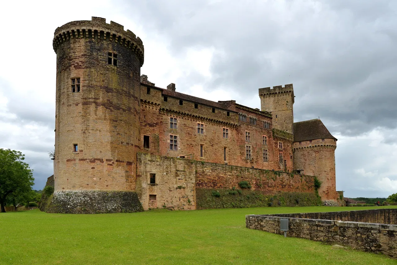 Le château de Castelnau-Bretenoux, situé à Prudhomat, en France, est une impressionnante forteresse médiévale qui offre aux visiteurs un aperçu de l'histoire de France. L'extérieur saisissant du château en grès rouge et sa position proéminente au sommet d'une colline en font un point de repère notable dans la région.